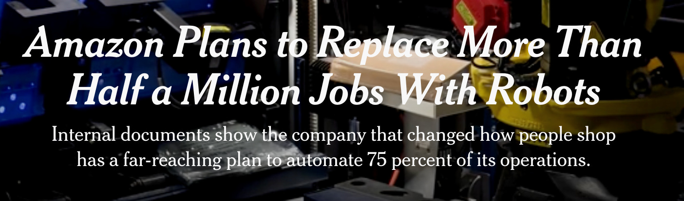 You hear echoes of the coming battle between creatures and machines in news that Amazon executives expect humanoids and other robots to displace more than 500,000 of their workers. Amazon’s leaders are already preparing PR strategies to deal with the anger that will ensue: