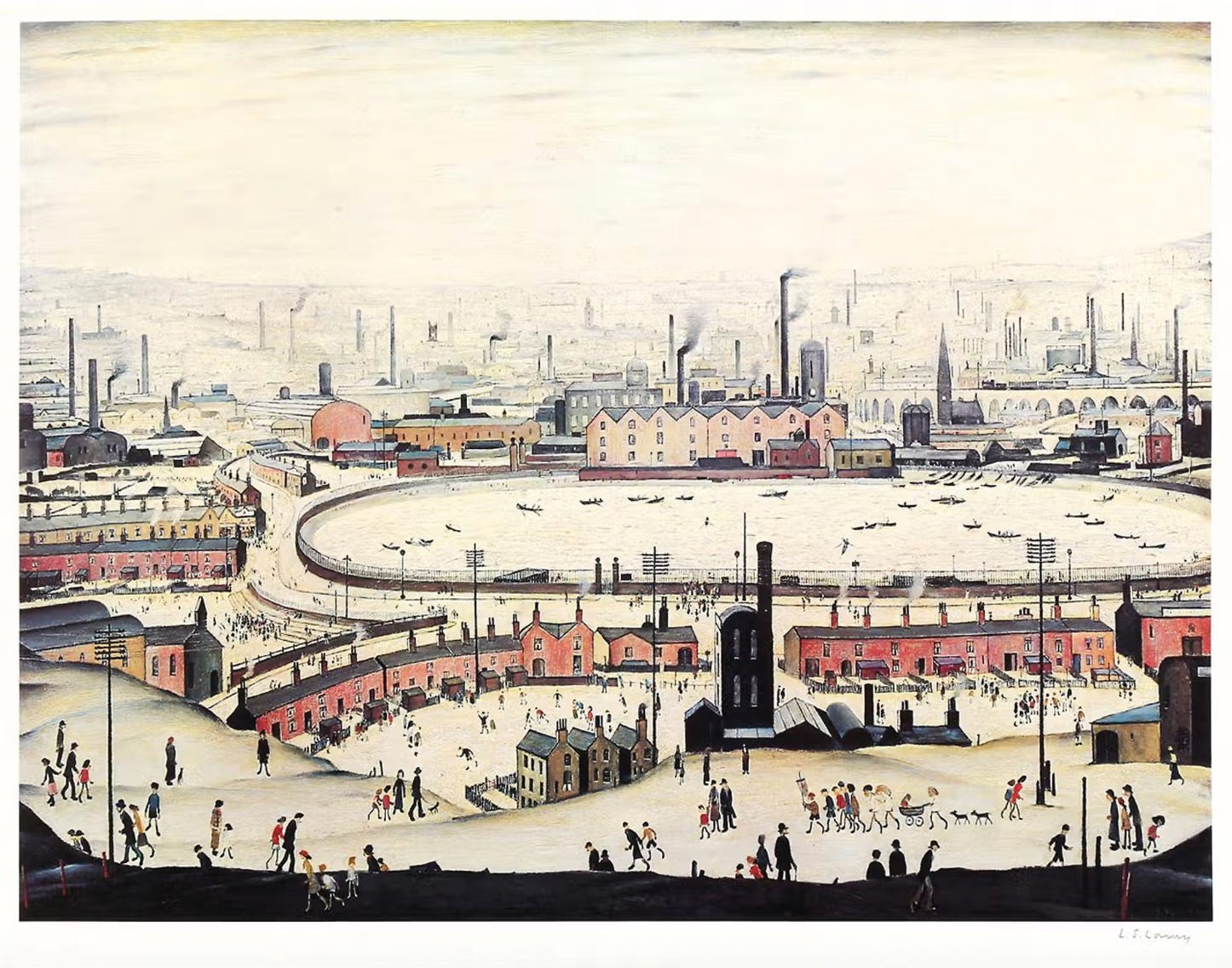 This was #26 in the series Postcards from the New World, from NWSH. The title artwork is The Pond (1950) by LS Lowry.
